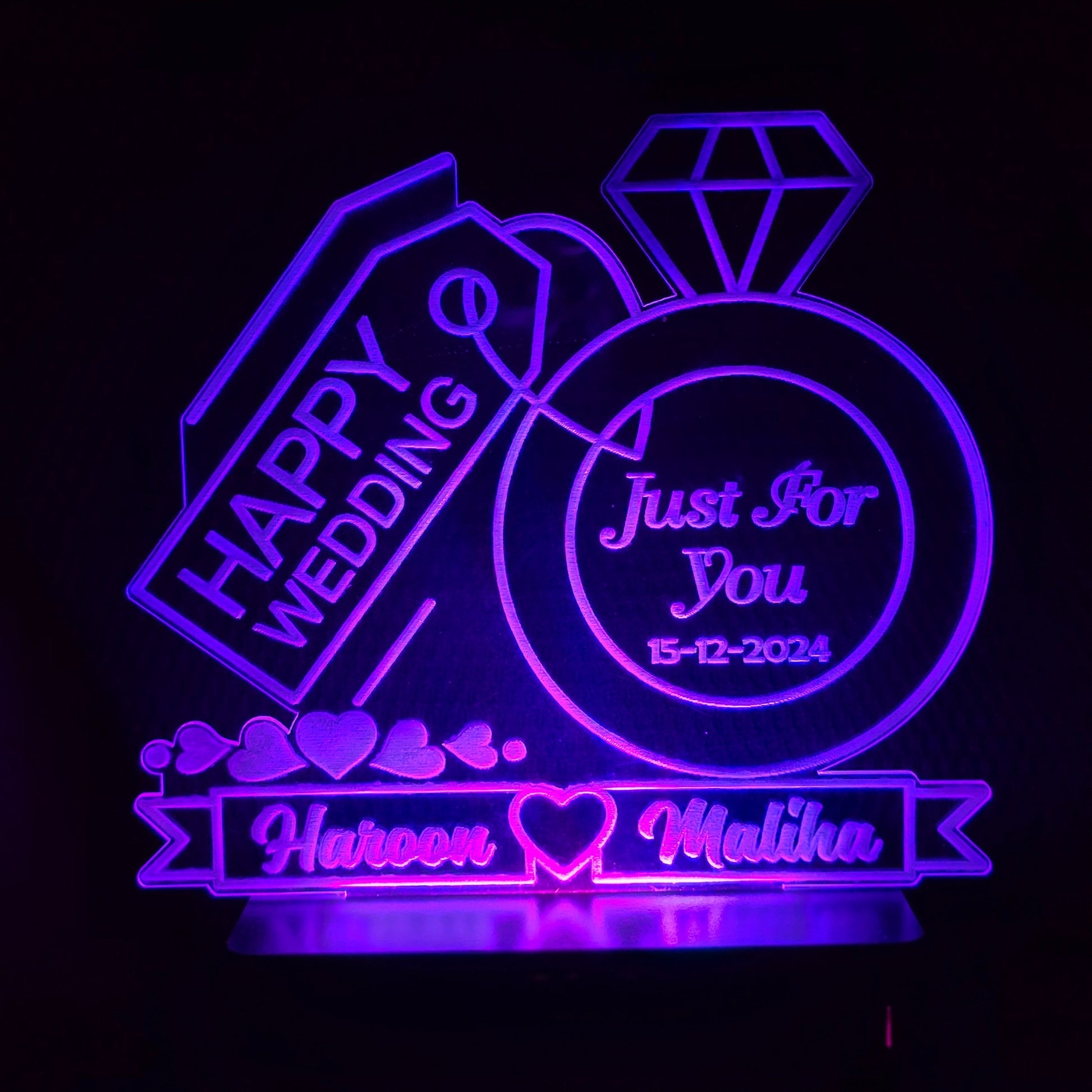 Celebrate Eternal Love with the Happy Wedding Ring 3D Customized Illusion Lamp!