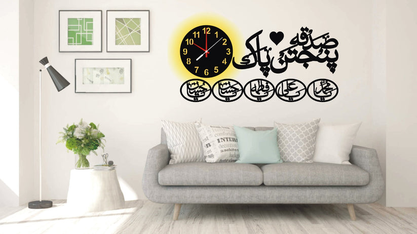 Sadqa Panjtan Pak Islamic Wooden Wall Clock