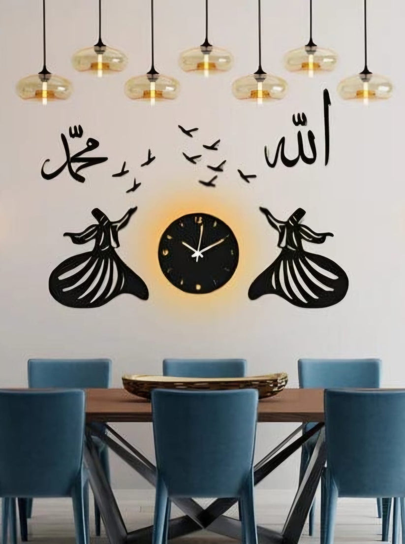 Sufi Allah Muhammad Islamic Wooden Wall Clock